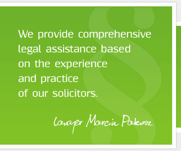 and sole proprietors). Our Office provides regular legal support to companies, as well as one-time legal advice and consultations.